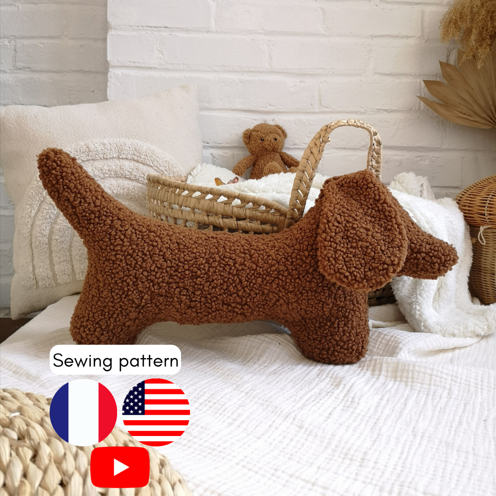 Fall in love with this dachshund sewing pattern and create an adorable dog cushion with its iconic look: long body, short legs, and floppy ears.