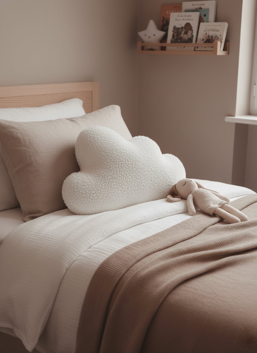 Looking for a neutral and elegant way to decorate your nursery? Look no further than our giant 55 cm/21 inch long cloud cushion! This cozy sherpa cloud pillow is perfect for adding a touch of softness to any child's bedroom, and it's also a great gift idea for teens.